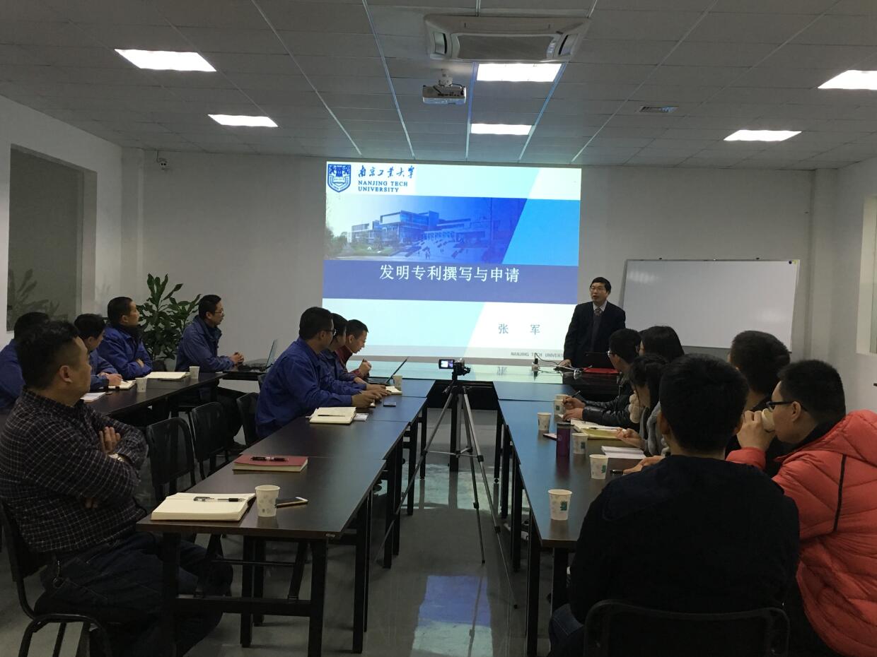 11月11日,南京工業(yè)大學(xué)教授、博士生導(dǎo)師張軍帶他的7名博士(碩士)生來(lái)到我公司,對(duì)技術(shù)部、生產(chǎn)部、工務(wù)部和知識(shí)產(chǎn)權(quán)辦公室相關(guān)人員,進(jìn)行了發(fā)明專利相關(guān)知識(shí)的培訓(xùn)。
